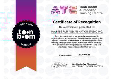 We are an accredited ToonBoom certification center, which means we train all our animators and students to industry standard. We offer youth animation boot camps, studio internships & more.